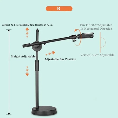 4️⃣ 水平臂可以360°旋转,适合多角度拍摄,并且可以自由伸缩和固定,确保完美拍摄。🔄